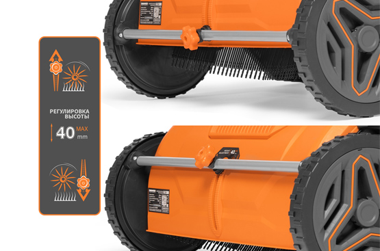 Позволяет точно регулировать высоту щеток относительно поверхности, подстраиваясь под разные виды грунта и толщину покрова опавших листьев.